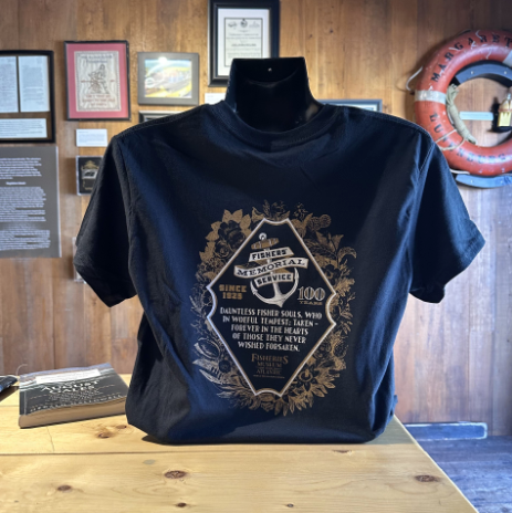 The Fisheries Museum of the Atlantic in Lunenburg hired me to develop a commemorative t-shirt for their staff to wear on the occasion of the 100th anniversary of the Fisher's Memorial Service - an annual recognition and remembrance of the lives lost at sea in service of the fishing trade. Wreaths are an important part of this tradition; every year a group of vessels heads out to sea and casts wreaths into the ocean as part of the service, so I wrote the rhyming verse on the back and encircled the artwork with a vintage wreath illustration as was similarly used in early advertising for the event from the 1920's. The shirt is now available for purchase in the Museum gift shop, and all proceeds from sales are donated to the Lunenburg Fishermen's Memorial Society for the upkeep and maintenance of the Lunenburg Fishermen’s Monument, dedicated to the fishers and vessels lost at sea.